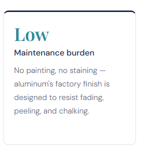 Unlike wood, aluminum doesn’t absorb moisture, which means it won’t rot, split, or warp over time. Unlike some composite materials, it’s also non-combustible — an important safety consideration for many homeowners and contractors. Aluminum is lightweight, which simplifies installation, but it’s also highly resistant to impact, wind, and the kinds of freeze-thaw cycles that are common in Eastern Canada.